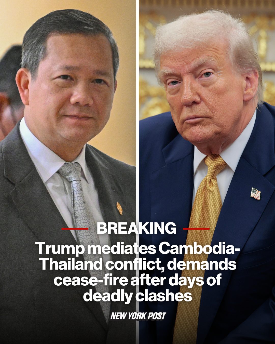 President Trump has begun mediating the deadly conflict between Cambodia and Thailand over a border dispute and demanded that the two sides reach a ceasefire to avert a full-blown war.