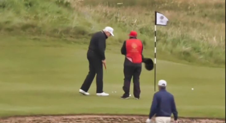 “Hitting a real bender. Caddie should know by now Trump ain’t getting his ball!” someone added.
