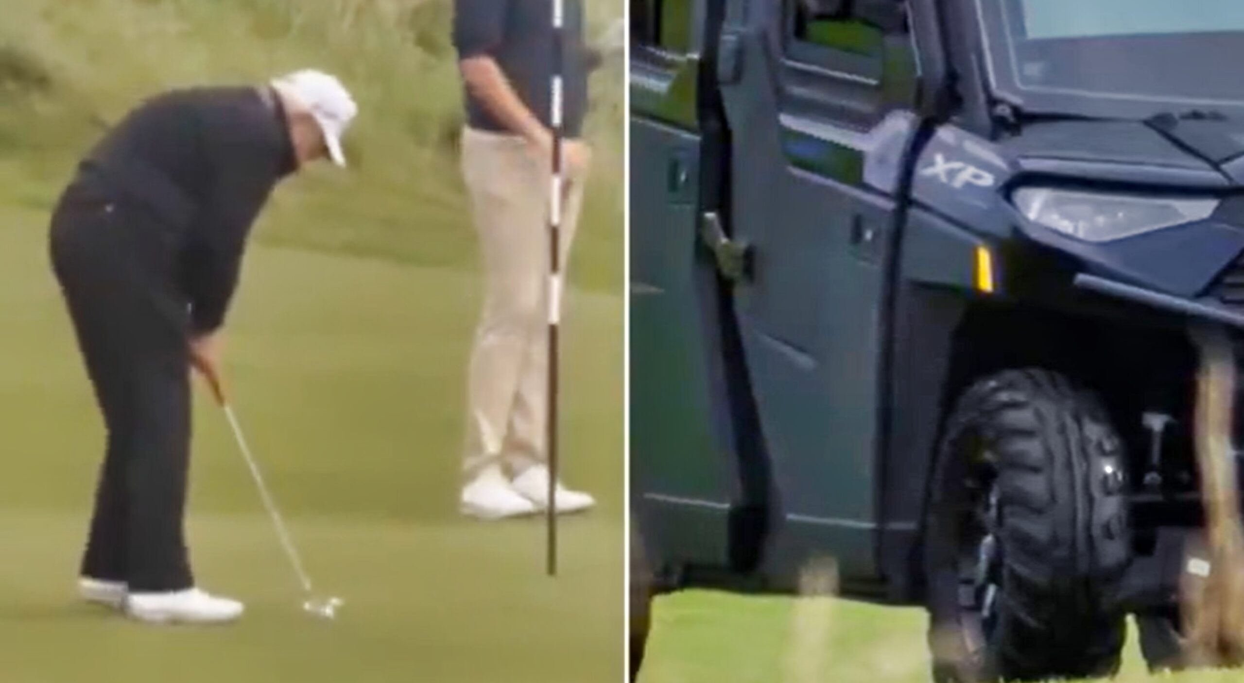 The vehicle is thought to be a Polaris Ranger XP designed for defense and ready to function as a rapid escape car in case threats arise, but it’s also friendly on the greens.