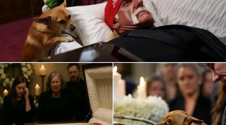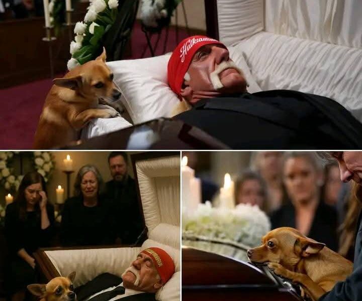 Duke, Hulk Hogan’s beloved Chihuahua, was carefully cradled by the family and gently brought to the casket. The small dog, his coat as soft as the candlelight around him, was visibly affected by the absence of his lifelong companion. As he sat by the casket, his eyes, full of confusion and sorrow, scanned the room, perhaps still hoping to hear that familiar, booming voice that had once called him with affection and loyalty.