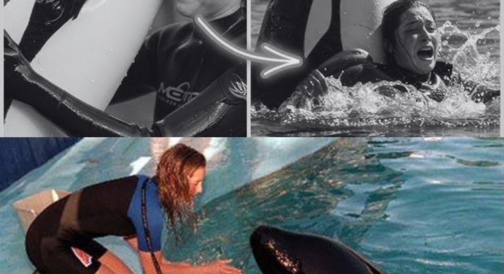What happened next was captured on a spectator’s phone and has since been viewed millions of times online. One moment, Jessica was performing her usual routine with the killer whale named Koa — a massive, majestic orca who had been part of the park’s show for years. Koa was known for his size, strength, and seemingly calm demeanor. The crowd cheered as the orca followed Jessica’s commands, breaching the water, spinning mid-air, and splashing the front rows with dramatic flourishes. Everything seemed perfectly orchestrated, right until the moment it wasn’t.