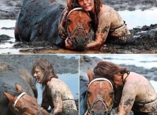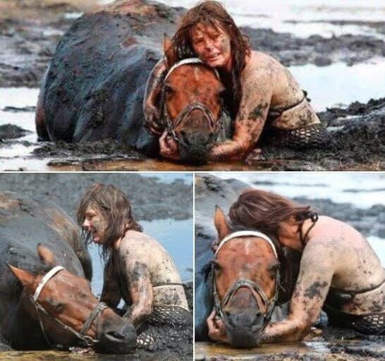 Nicole’s daughter and her horse managed to get escape, but she and Astro sank deeper into the mud. Astro was soon up to his neck in clay and risked choking to death. Nicole spent three hours by Astro’s side in a battle of life and death.