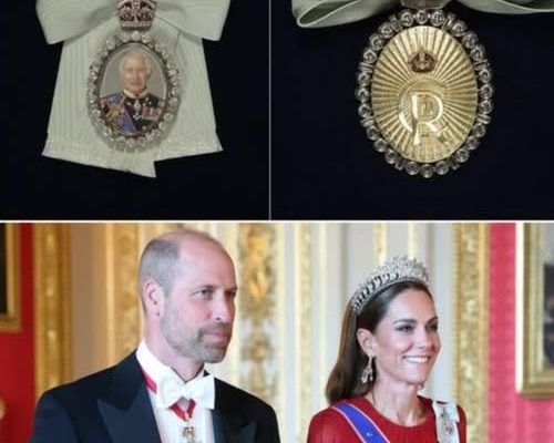 Catherine wore the Royal Family Order of King Charles III for the first time publicly—a rare honor bestowed by the King himself. Worn alongside Queen Elizabeth II’s order, it reflected her loyalty and service across two reigns.