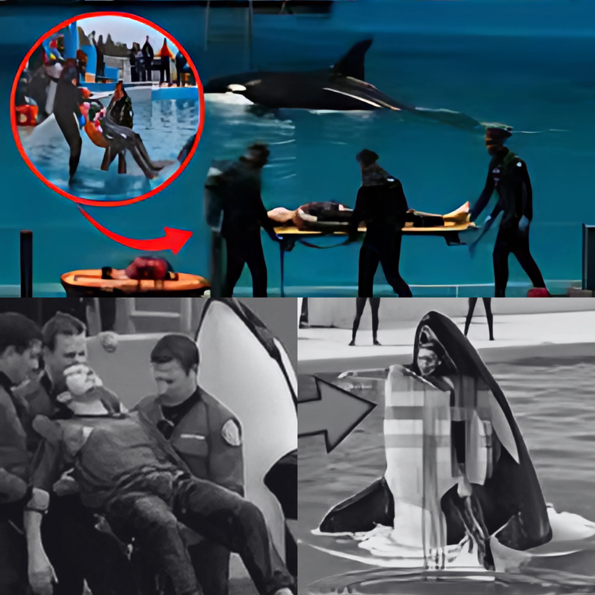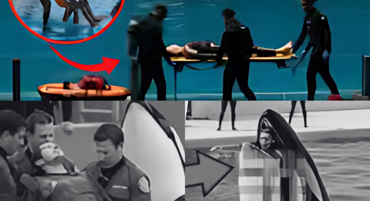 The video captures the whale’s sudden lunge, dragging Marston beneath the surface. Gasps and screams from the audience fill the background as park staff rush toward the tank, frantically attempting emergency protocols.