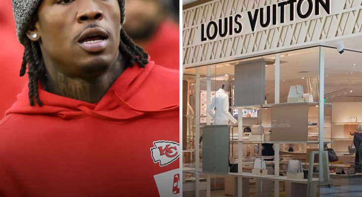 In a shocking turn of events that has gripped the internet and ignited fierce conversation across the sports and fashion worlds, Kansas City Chiefs wide receiver Rashee Rice became the unexpected center of a viral controversy involving luxury brand Louis Vuitton. The incident began when Rice, dressed casually in jeans and a hoodie, was reportedly mocked and denied entry by Louis Vuitton store employees who failed to recognize the NFL star. But just 48 hours later, the truth came out — and now the brand is facing a wave of backlash as fans, players, and celebrities unite in support of Rice.