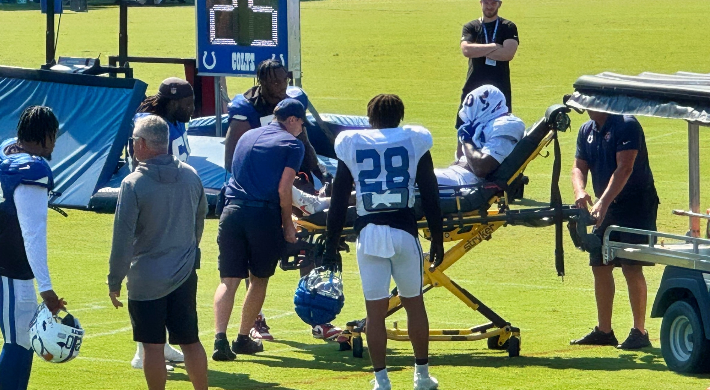 ESPN’s Stephen Holder described the injury as “severe.” It occurred when Trey Washington took Ahmed down with a hip-drop tackle. The entire Colts team gathered around to take a knee as the 26-year-old was being put on the stretcher.