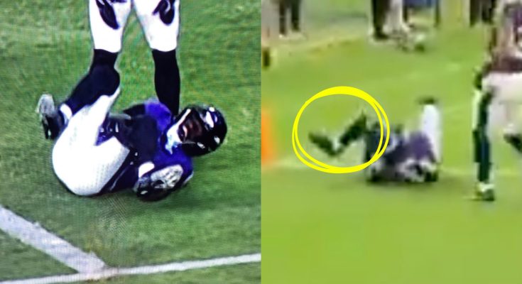 A fan captured a video of Baltimore #Ravens rookie cornerback Bilhal Kone’s leg sideways, as it appears he SNAPPED his leg on this play.