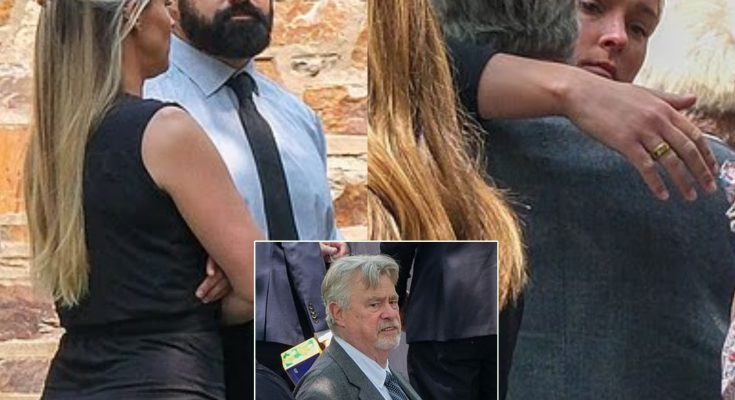 Kylie pulled her father-in-law in for a hug as they exited the church following the service