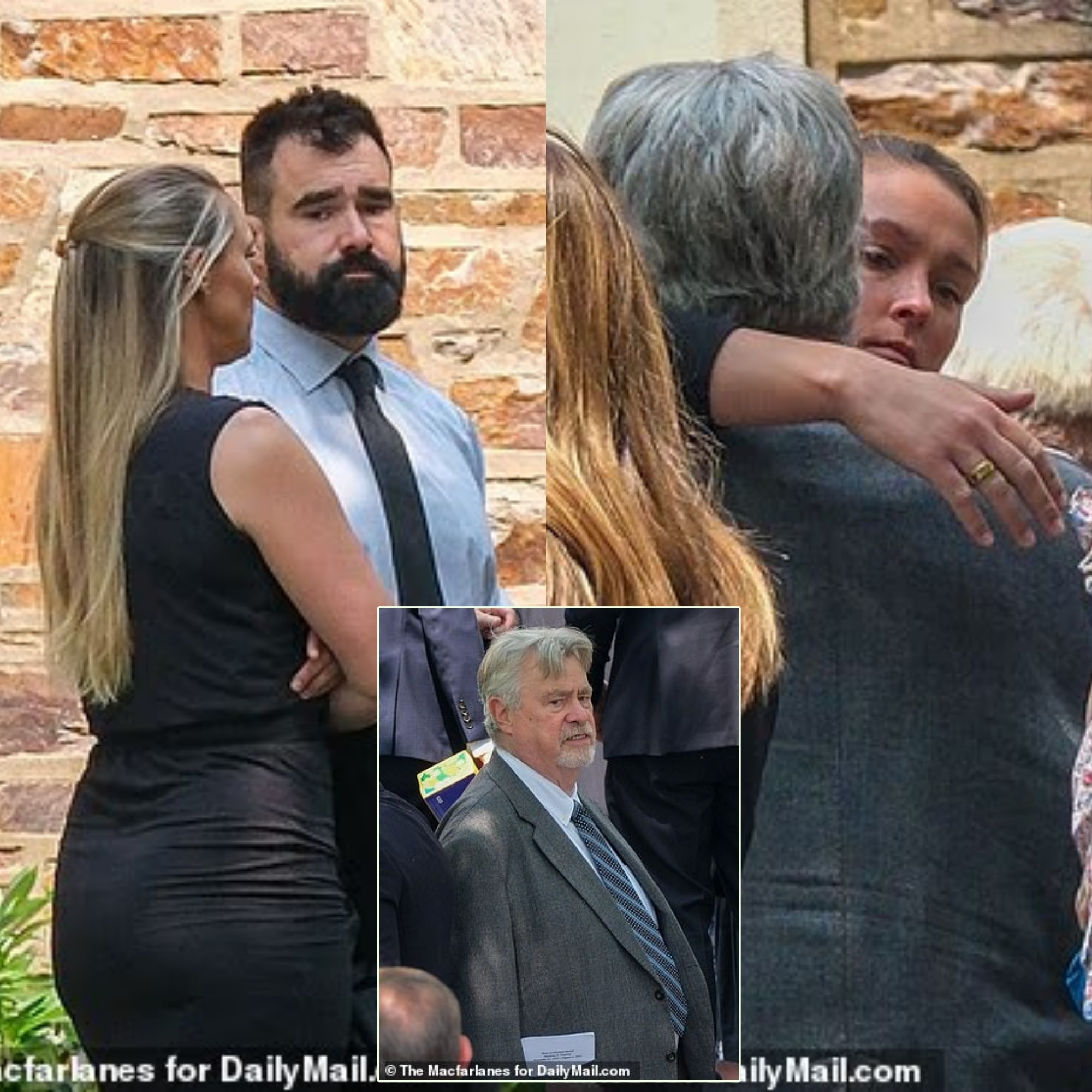 A somber Jason and Kylie Kelce were seen arriving at the funeral of his father’s partner