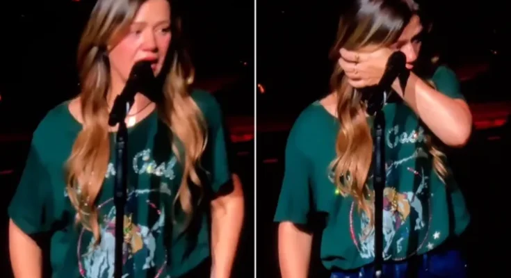 In a newly resurfaced video recorded by TikTok user @modestishottest4u from Clarkson’s July 26 show at her Las Vegas Studio Session residency, the pop star, 43, broke down in tears multiple times while introducing the newly reworked version of her song “Piece by Piece.”
