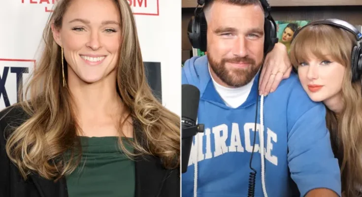 Kylie Kelce opened up about losing her record for the most listened to episode of her husband Jason Kelce’s New Heights podcast to Taylor Swift