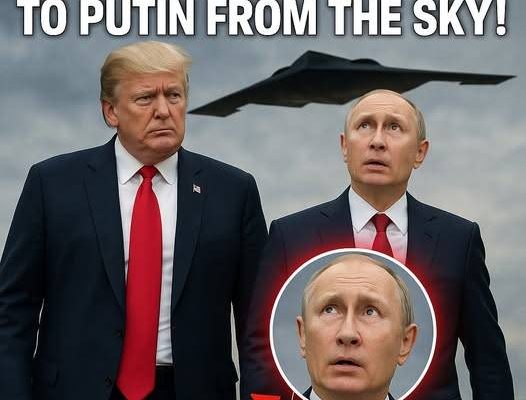 Without warning, a B-2 Spirit stealth bomber sliced through the clouds, gliding directly over their heads. Cameras captured every detail — Trump walking with calm confidence, and Putin glancing upward with an unmistakable look of shock. It was the kind of image that needs no explanation… yet demands one.