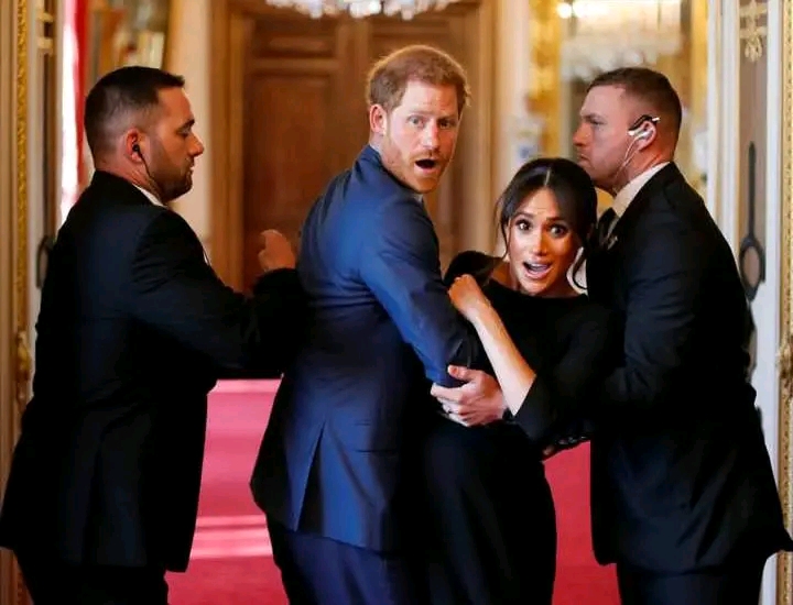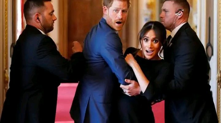 According to eyewitnesses near the palace, the Duke and Duchess of Sussex appeared unexpectedly at the gates, where they were believed to have requested a private meeting regarding potential financial assistance. One observer noted the couple appeared “reserved,” with Prince Harry carrying a shopping bag and Meghan Markle holding a folder labeled “Business Opportunities.”