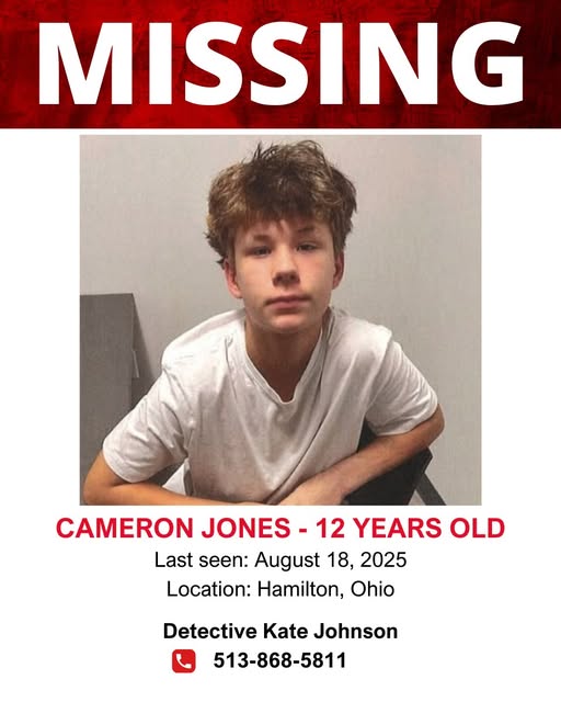 If you have any information about Cameron’s whereabouts, please call Detective Kate Johnson at 513-868-5811, extension 1235.