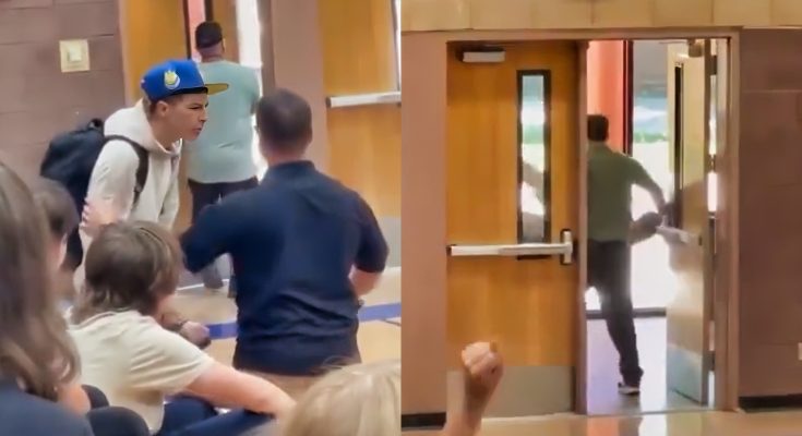 A video circulating online shows a young man hitting a teacher during a freshman class meeting inside the gym, sparking concern among parents, students, and the community.