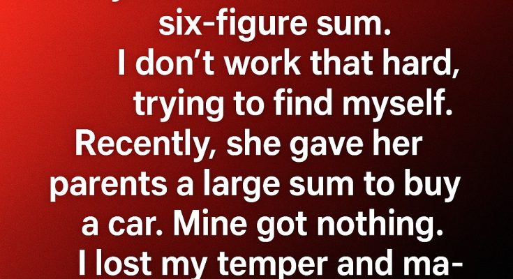 My wife works two full-time jobs and earns a strong six-figure income. I don’t work nearly as much — I’ve been in a season of “finding myself,” trying different things but without the same drive she has.Recently, she gave her parents a generous sum to help them buy a new car. I watched this unfold, and instead of feeling proud of her kindness, I felt bitterness rise in me. My parents received nothing, and I couldn’t help but compare.