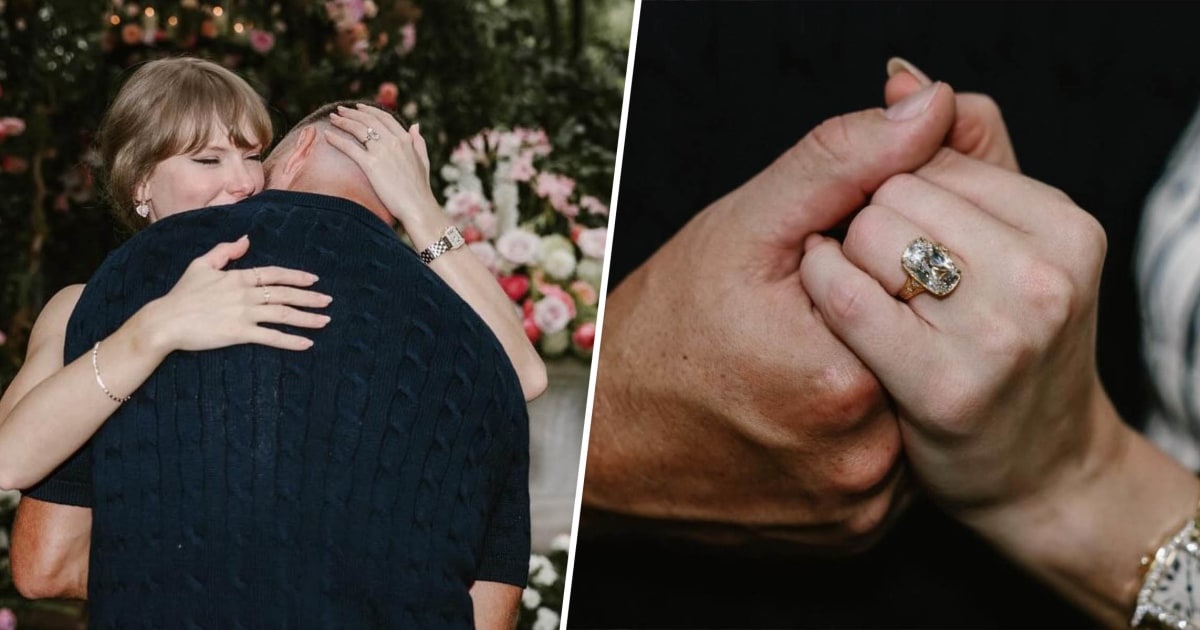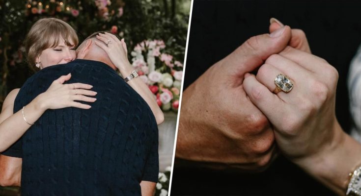 Taylor Swift and Travis Kelce announced their engagement on Tuesday, with the pop star showing off an enormous custom ring designed by the Kansas City Chiefs tight end himself.
