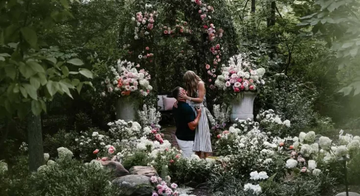 The post included photos from the magical proposal, which showed the lovebirds surrounded by a number of flowers in a garden setting