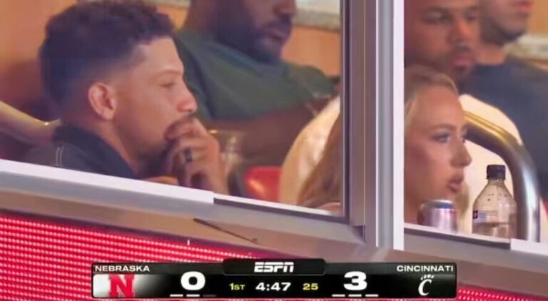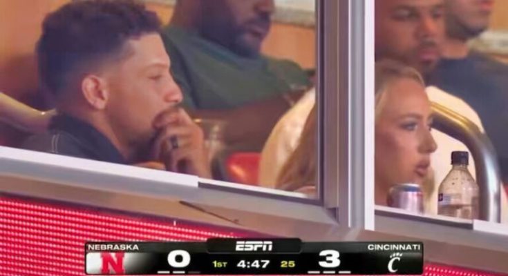Cameras eventually showed Patrick Mahomes inside a suite watching the game, but they also caught a spirited conversation between him and his wife.