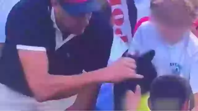 Too busy giving out autographs to other kids, the athlete didn’t realise that a much older US Open attendee had made a grab for the cap too.
