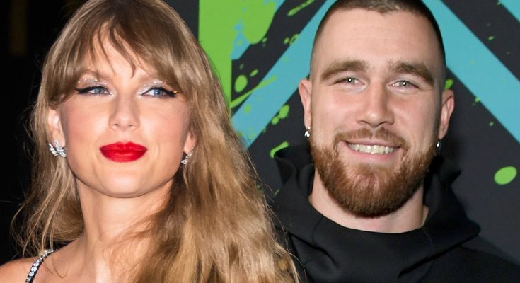 Taylor wore in a blue denim mid-thigh dress paired with wedges, her hair swept to the side, while Travis kept it casual in a green striped shirt and cap. We’re told the two acted like any normal couple — laughing with his teammates, trading quick kisses, and flashing smiles across the room whenever they drifted apart.