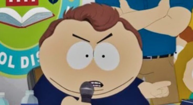The second episode had Eric Cartman becoming a right-wing podcaster who resembled Kirk and toured college campuses debating students.