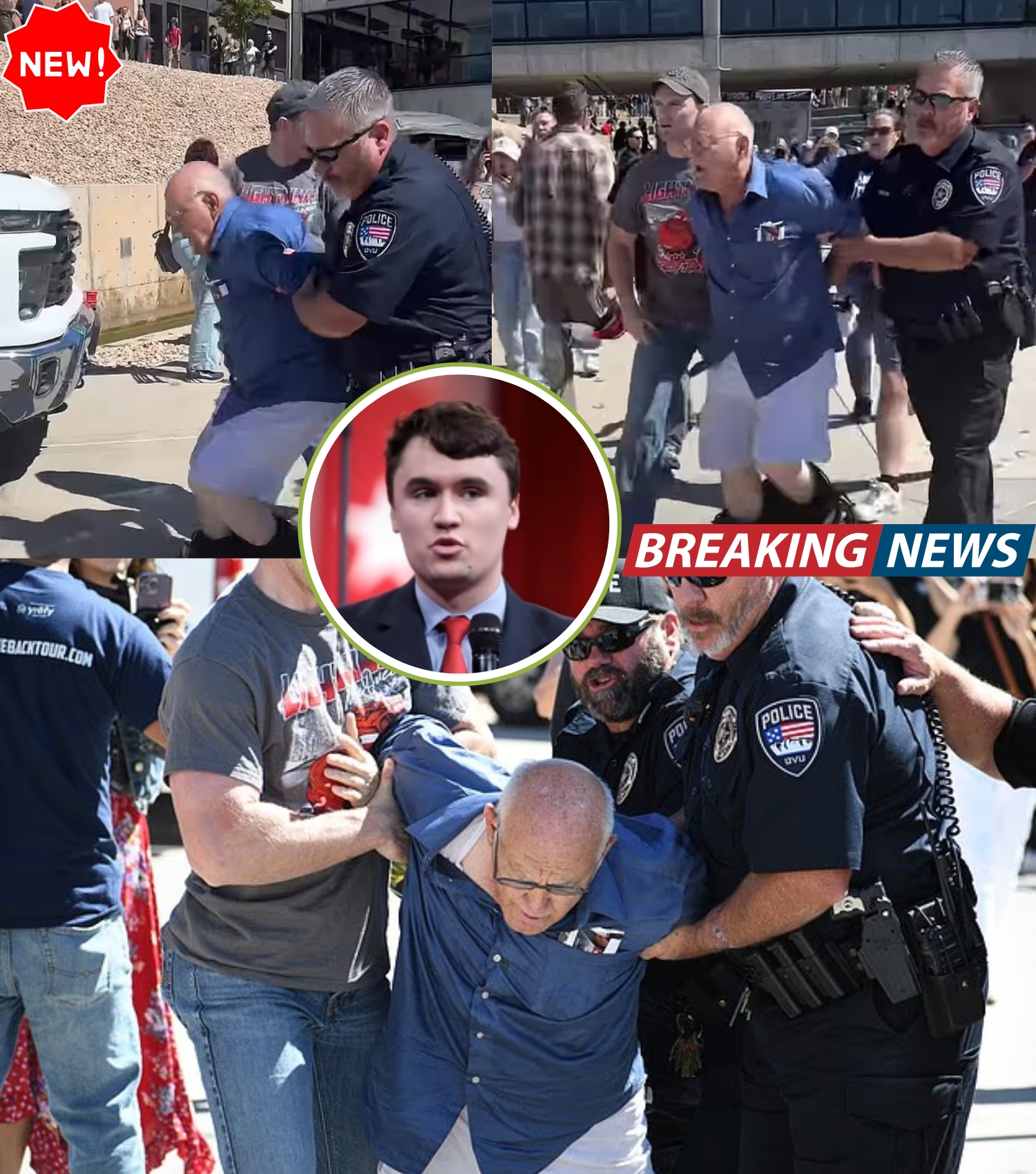 As chaos took over the scene, an elderly man was seen being hauled away by cops while furious witnesses screamed and hurled abuse at him.