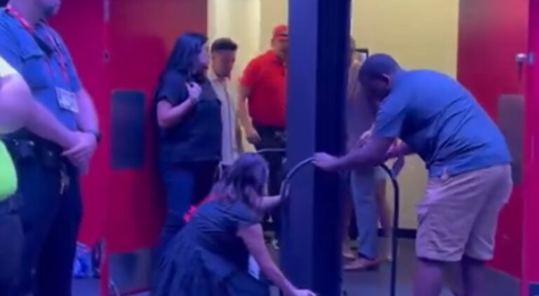 Footage online showed Swift walking behind a screen for unknown reasons.