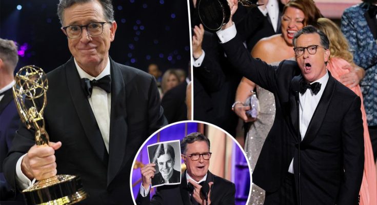 Stephen Colbert made an emotional plea to Hollywood execs to hire his staff as he addressed his “Late Show” cancellation in a surprise monologue at the 2025 Emmy Awards Sunday night.REUTERS