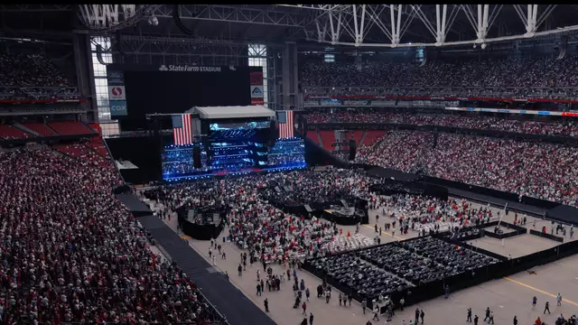 Tens of thousands packed into the State Farm stadium in Arizona for an event to honour the right-wing podcaster, who was fatally shot in the neck while attending a college debate in Utah as part of his comeback tour.