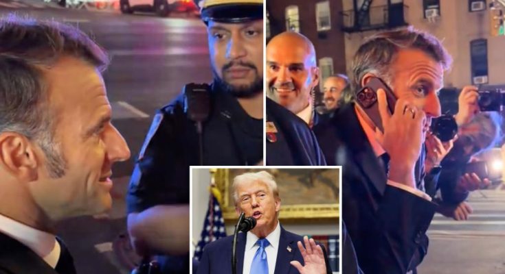 French leader Emmanuel Macron got an authentic New York experience when his car was blocked by UN traffic — with the head of state filmed getting out to walk and even calling President Trump for help.