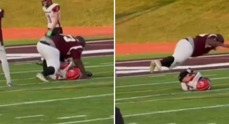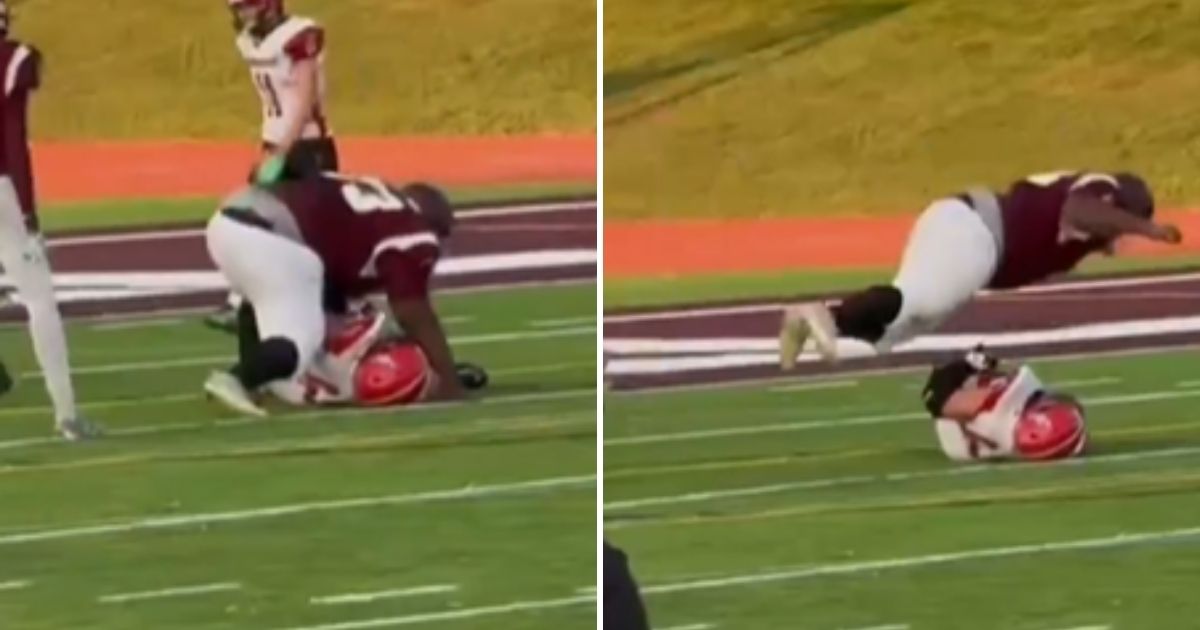 According to Fox News, a Kalamazoo Central High School football player crossed a major sportsmanship line when he jumped on a prone Lakeshore High School student-athlete on Thursday in a scene that looked like it was right out of “Blitz,” except much, much more real.