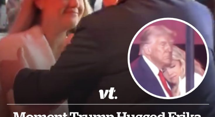 The footage, which is shot from backstage, shows Erika walking up to the President and embracing him in a very genuine hug.