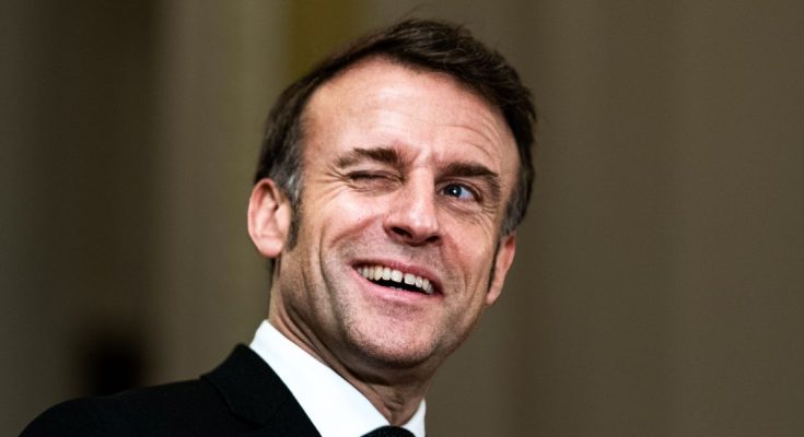 Looking down the eerily empty street, Macron replies with a laugh and a diplomatic edge, “If you don’t see it, let me cross. I’ll negotiate with you.”