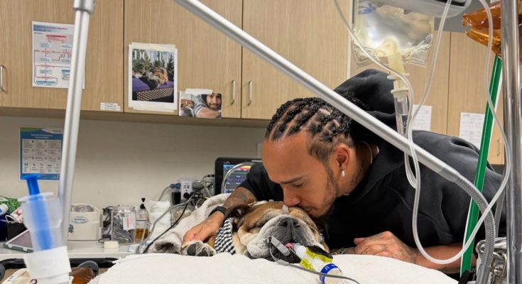 The Formula One legend shared the heartbreaking story on his Instagram, posting photos of himself right by his English Bulldog’s side in the hospital and detailing what they have gone through this week.