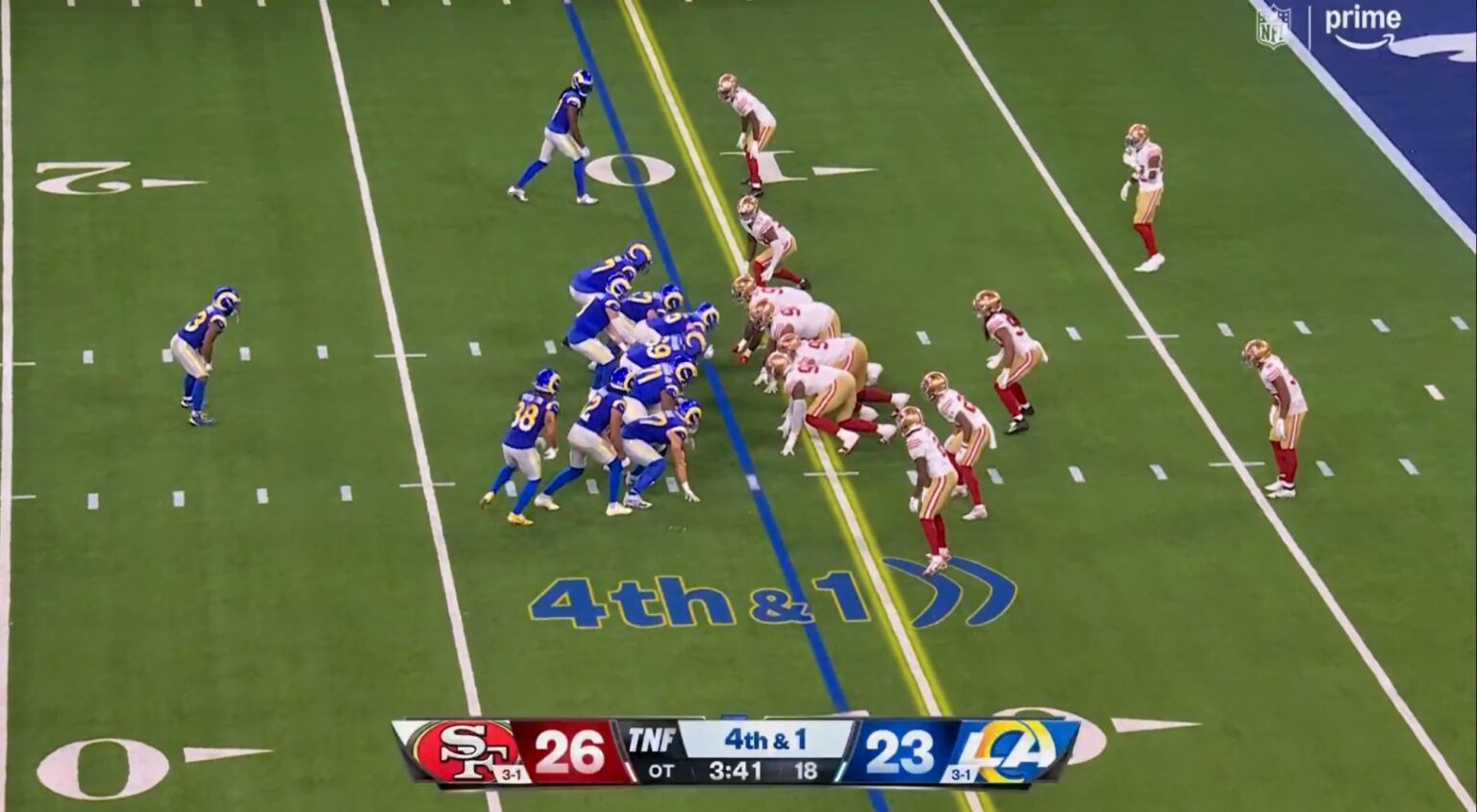 After Eddy Pineiro’s 41-yard field goal put the 49ers ahead in the extra frame, Robert Saleh’s defense stuffed Kyren Williams on 4th-and-1 in the red zone to secure the stunning road win in SoFi Stadium: