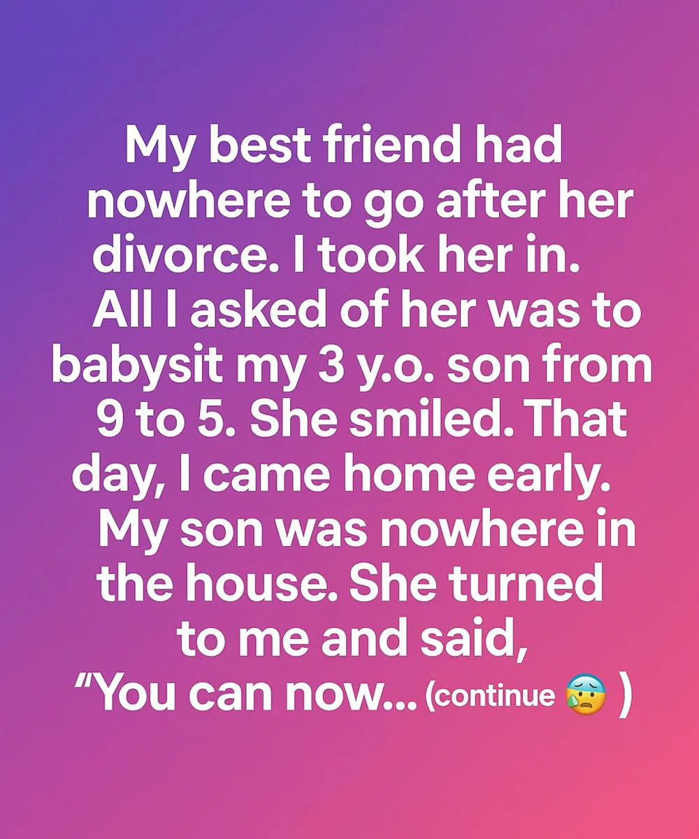 I searched every room—his toys scattered on the floor, his little shoes by the door—but no sign of him. My heart pounded. I rushed into the living room and found my best friend calmly sitting there.