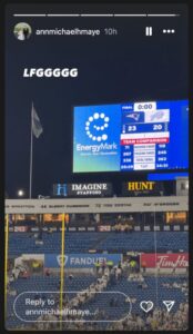 Following the contest, Ann took to her Instagram story and wrote, “LFGGGGG,” while including a picture of the final score at Highmark Stadium in Buffalo.