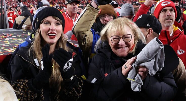 Donna Kelce showed some love for her future daughter-in-law, Taylor Swift, during Monday Night Football.