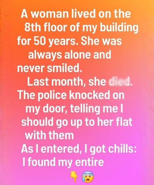She never attended holiday gatherings or neighborhood meetings. I never once saw her with visitors. If someone greeted her in the hallway, she offered a polite nod, nothing more. She was, to everyone, the quiet lady upstairs.