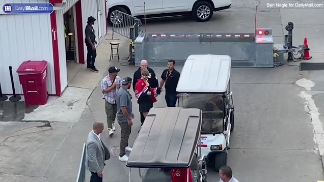 Fans erupt as security blocks Taylor Swift from entering the field after she lands at Arrowhead Stadium to support Travis Kelce and the Chiefs for the first time this season!