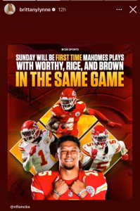 The Chiefs finally have their top trio of receivers ready: Rashee Rice, Marquise “Hollywood” Brown, and Xavier Worthy. For the first time this season, Mahomes will have his full arsenal, and Brittany made sure the world knew it.