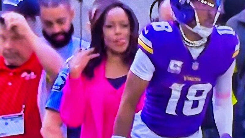 Jefferson would check on the sideline reporter to make sure she was okay, prompting some commentary on him possibly being the nicest guy in the NFL.