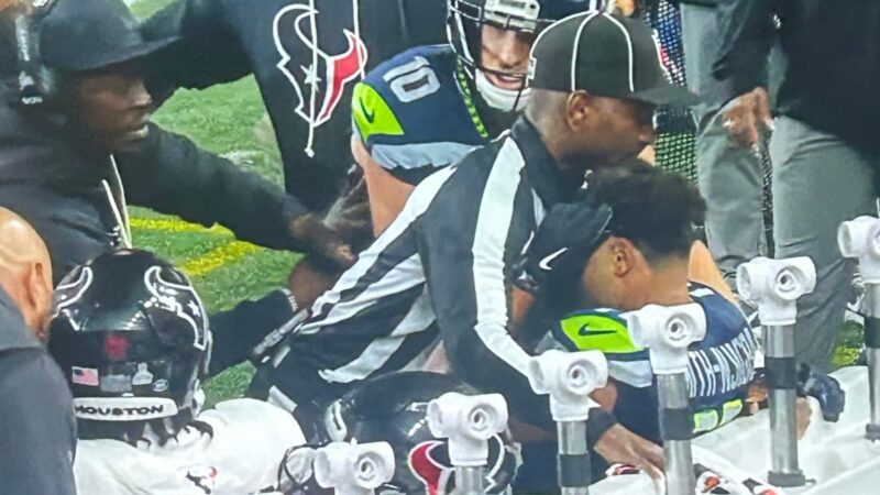 The situation came about after Derek Stingley Jr. intercepted a Sam Darnold pass intended for AJ Barner. Stingley stiff-armed Smith-Njigba as he ran out of bounds, causing his helmet to come off.