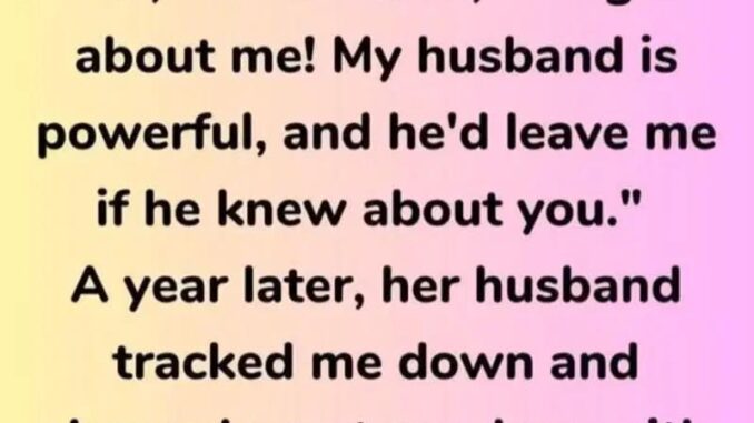 “Forget about me!” she whispered sharply. “My husband is powerful, and he’d leave me if he knew about you.”