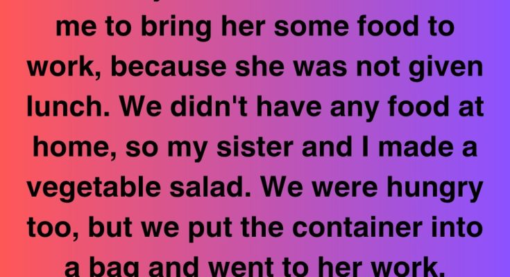 One afternoon, my mom called and asked if I could bring her some food to work. We barely had anything in the fridge—just some vegetables—so my sister and I made a simple salad. We were hungry too, but packed it into a container and headed to her workplace. When we arrived, my mom wasn’t alone….