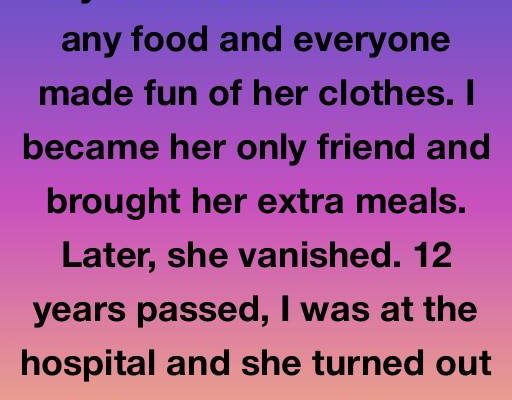 Amy was the only underprivileged girl in my class. She often had no food, and other kids made fun of her clothes. I was her only friend, bringing her extra food whenever I could. Then, one day, she disappeared. Twelve years later, I was recovering from surgery, lying in a freezing hospital bed with an…