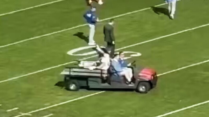 The unfortunate injury happened midway through the second quarter, after Cam Skattebo got tangled up with Zack Baun on a passing play. Skattebo was down for several minutes before getting carted off: