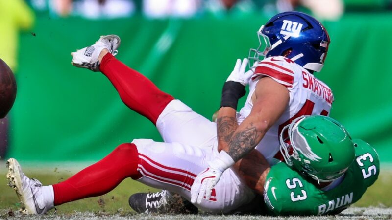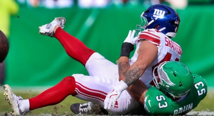 Skattebo went down in the second quarter of the New York Giants’ game against the Eagles when his right ankle appeared to roll under him during a catch attempt. He was immediately carted off the field with an air cast and transported to a local hospital for evaluation.