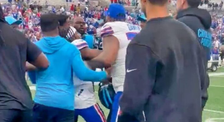 Buffalo Bills offensive tackle Dion Dawkins and Carolina Panthers defensive end A’Shawn Robinson nearly sparked an all-out brawl after Sunday’s game at Bank of America Stadium.
